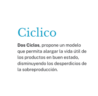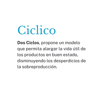 DosCiclos busca ser una canal, para crear conciencia en los hábitos de consumo, ofreciendo una alternativa con calidad y variedad, proponiendo un estilo de vida más amigable con el medio ambiente.